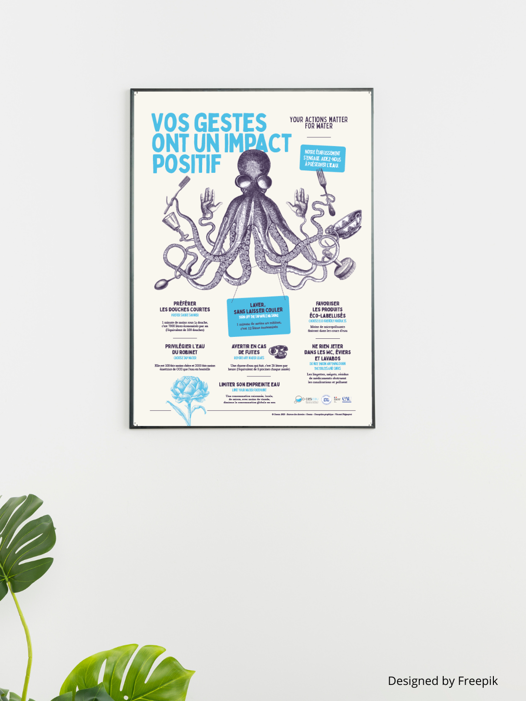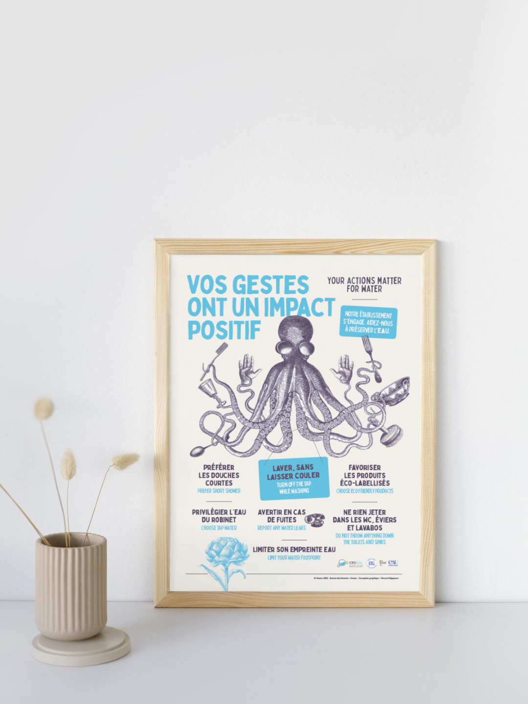 Il s’adresse à votre clientèle, française ou étrangère, pour la sensibiliser à l’eau pendant son séjour et l’inciter à des pratiques écoresponsables.