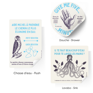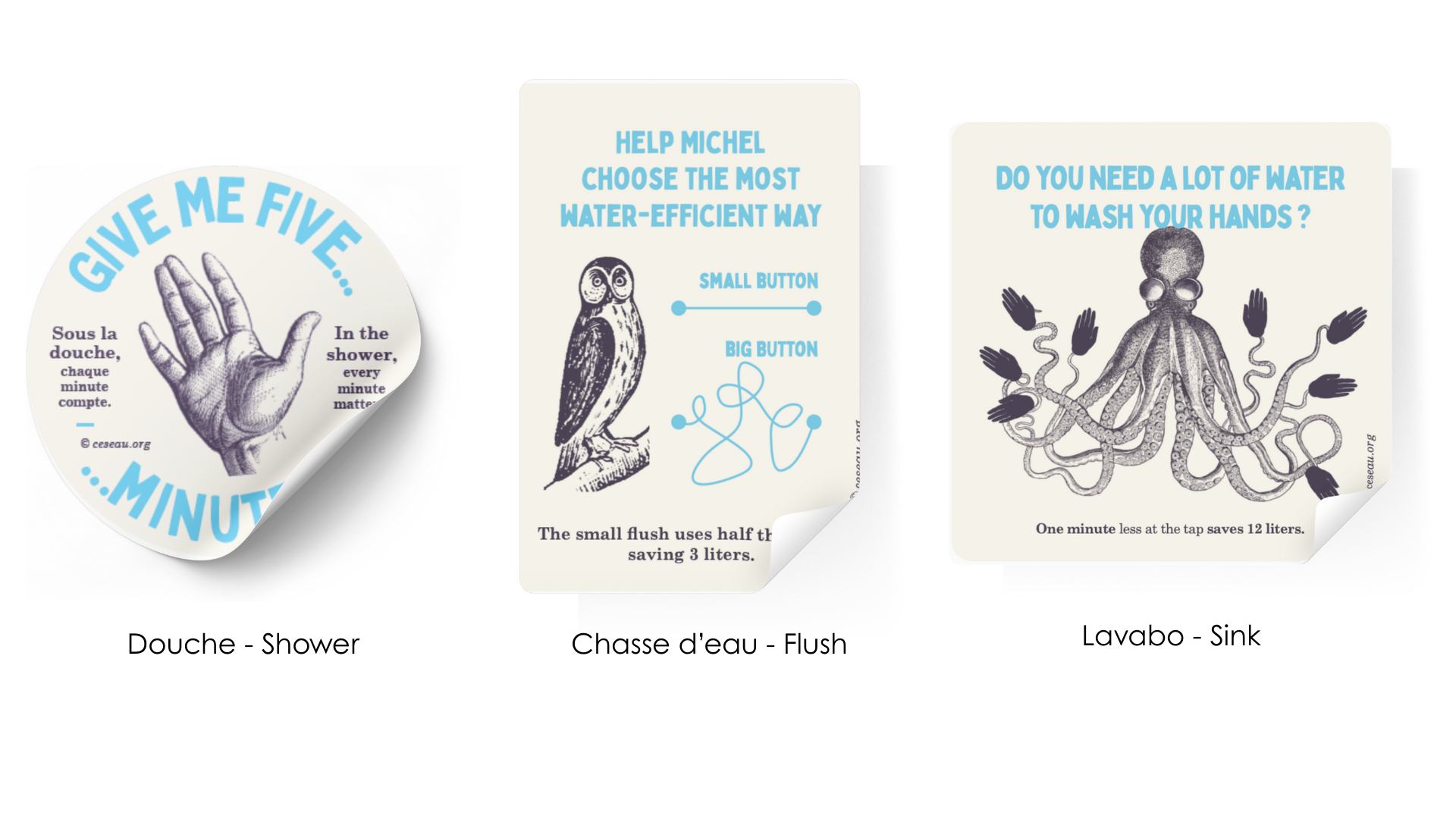 Le kit comprend des affiches et des stickers, en français et anglais. Plus précisément :